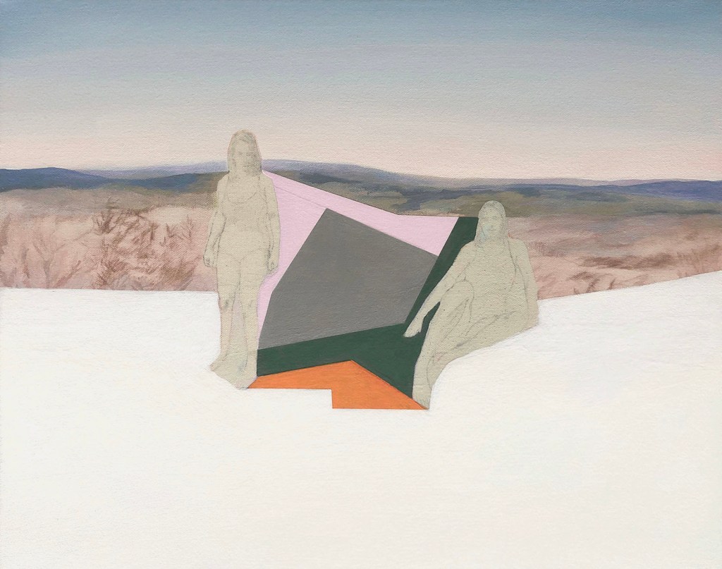 Cette recherche plastique vise à déconstruire et à reconstruire la structure schématique du paysage (sol-horizon-ciel). À la manière d’un collage, où les formes géométriques et les aplats de couleur se juxtaposent à des images de nature, en établissant un dialogue entre abstraction et figuration qui, tout en citant certains courants de la peinture moderne, invite le spectateur à une expérience visuelle riche et en constante évolution.